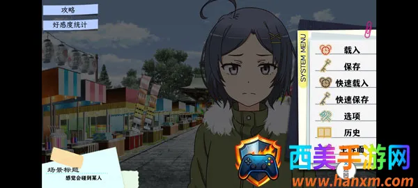 4、玩家可以通过点击对话界面右下角的铅笔图标查看好感度、存档、载入等。