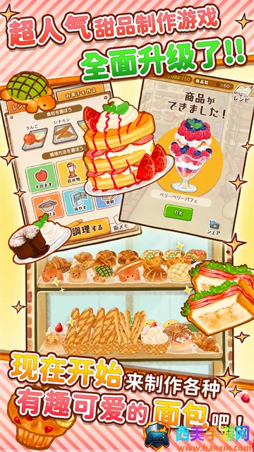 海量食谱:游戏收录超过三百种甜品与面包配方,能满足玩家对美食创作的无限想象,让玩家尽情发挥创意,制作出各式各样的美味点心。