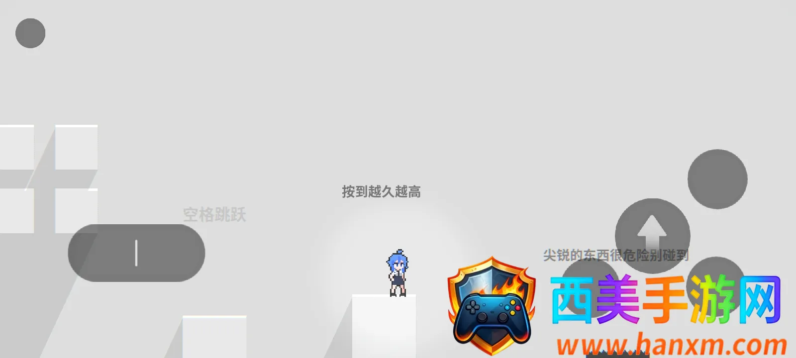 玩家可操控蓝发像素角色,凭借左右移动快捷键AD和跳跃来闯关,操作便捷流畅。