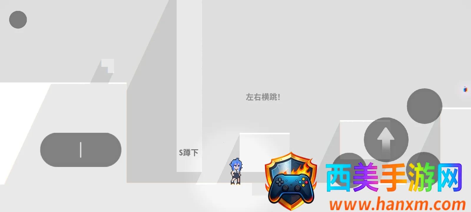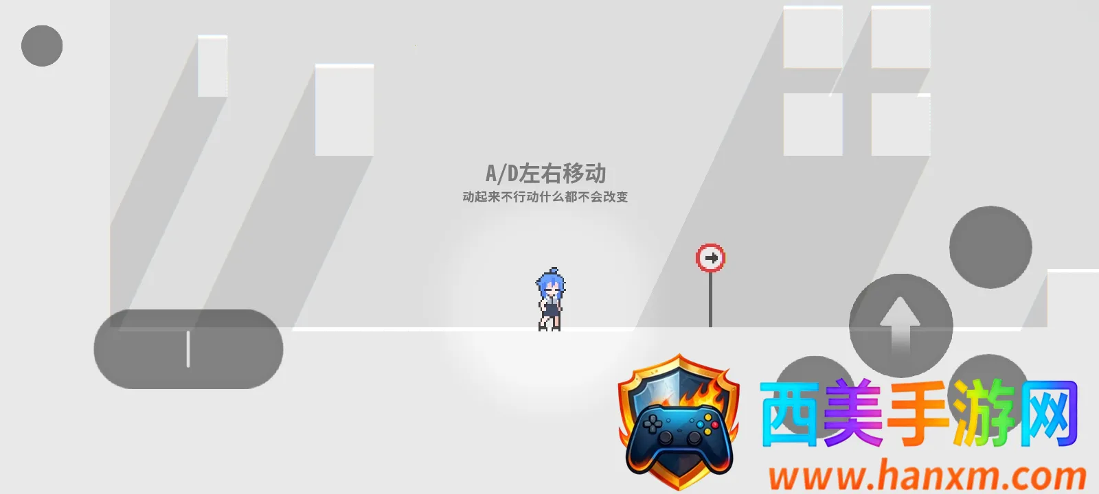 在《逃离:灰色之城2026最新版本》中,玩家操控蓝发像素角色,利用AD键左右移动、跳跃通过关卡。游戏场景为极简灰色调,需躲避陷阱机关,找到出口门才能成功逃离。