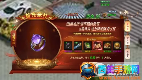 丰厚福利:上线送自动回收、自动拾取,打怪爆充币,每日签到有真充奖励,首充免费领,超凡会员杀怪免费领且打怪实物可回收换金点。