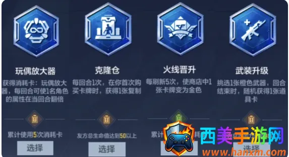 2、条件苛刻的升级效果不建议选择,可选择玩偶放大器、克隆仓、火线晋级、武装升级等简单通用的效果。