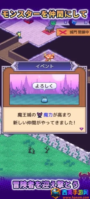 魔王城物语汉化版是开罗游戏的像素风经营养成游戏。玩家经营破败城堡,招揽魔物、设陷阱击退冒险者,通过培养、合成怪物提升实力,还能放置道具提升城堡魔力,规划布局打造魔王城。