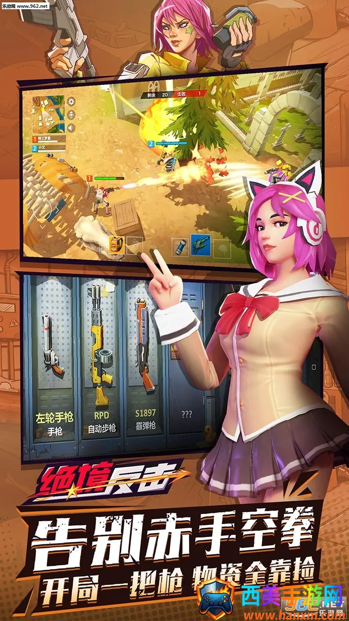 绝境反击游戏优势众多。**色彩鲜明的美式动画画风**,角色精致华丽。有众多游戏地图,能在不同地图吃鸡对战。海量枪械可拾取,体验射击快感,还有拟真射击手感。能获取数量众多的游戏道具,提升体验。操作简单易上手,辅助瞄准功能助玩家轻松入门。无论是画风、地图、枪械,还是道具与操作,都为玩家带来丰富且优质的游戏感受,让人沉浸其中。