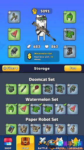 2. 精致卡通画风与可爱角色形象,视觉效果超棒,还有丰富多样的装备武器,能自由搭配体验不同战斗风格。