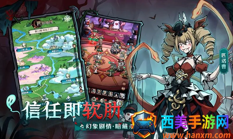 暗黑童话画风:打破千篇一律的手游画风,以迷人的黑暗童话风格带来视觉盛宴,东方传统故事与西方童话交织,多位经典角色在蛇之诅咒中重生,还有多个风格迥异的场景等你探索,沉浸于神秘危险的冒险。