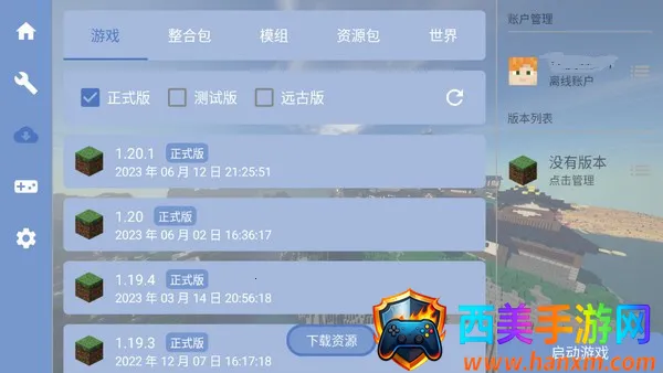 2、账号创建成功后,要选择游戏栏,在这里下载游戏本体,从1.0到最新版本都有,大家可以自行选择。