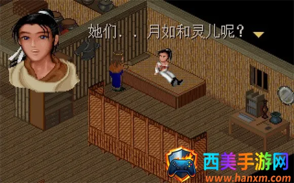 6、将姥姥埋葬後返回客栈先和躲在门口旁的小虎谈话小虎告知苗人寻仇进门与苗人博斗, 婶婶被挟持..但被婶婶的穿云手..(之前的生病好像生假的..) 婶婶决定让灵儿与逍遥结伴寻母晚上灵儿要求一起睡