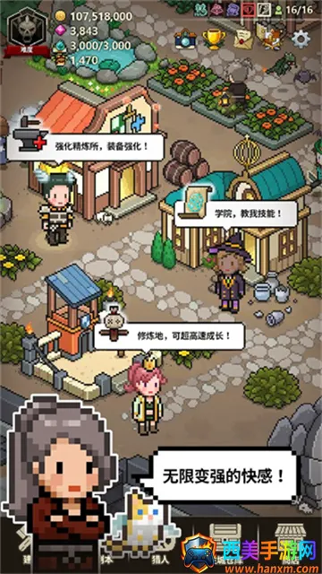 这是一款融合像素美术与经营策略的放置 RPG 手游。游戏中,玩家扮演猎魔村庄长,招募猎人讨伐魔物,建设设施打造据点。采用离线挂机与实时经营双线程玩法,带来丰富策略体验。