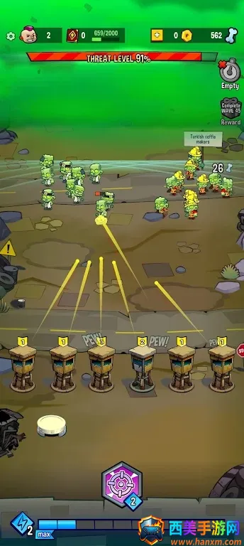1.点击画面下方的武器放置区域,可以放置瞭望塔进行战斗。
