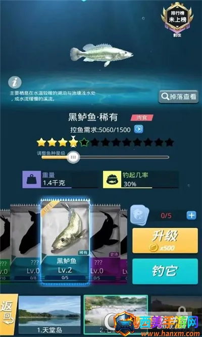 2. 不断提升钓鱼技能,解锁更高级的鱼竿鱼线和鱼饵。