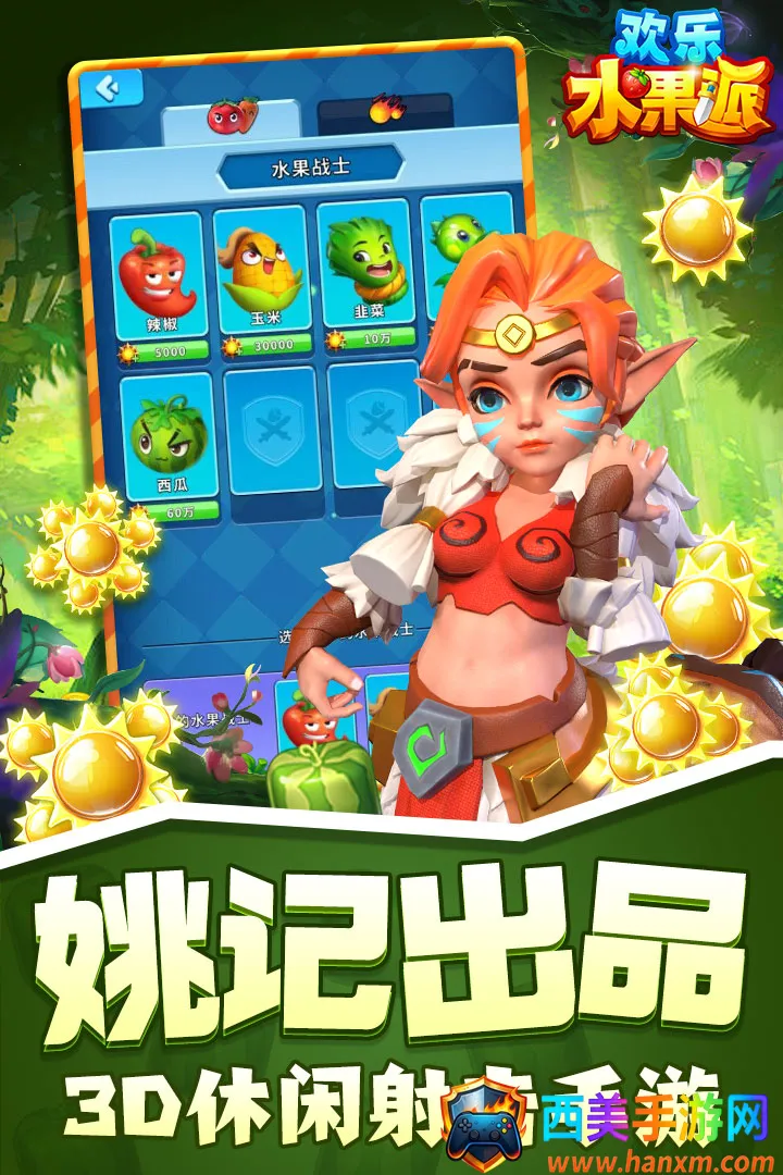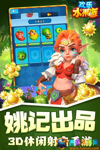 欢乐水果派2025官方正版是一款3D消除射击休闲解压手游,融合消除与射击玩法,有魔幻画面、丰富剧情。玩家化身海岛主,消除水果、射击降伏海妖,还有果园养成等,玩法多样,福利丰富。