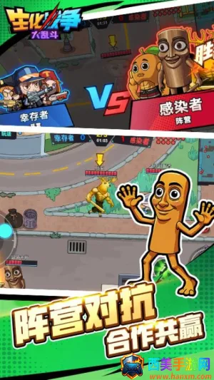 生化战争大乱斗是一款卡通风格多人对战射击手游。有双阵营玩法,人类选幸存者搭建防线,感染者操控山海经怪物感染。多种模式可多人实时匹配,画风轻快幽默,融合射击与策略,带来独特乐趣。
