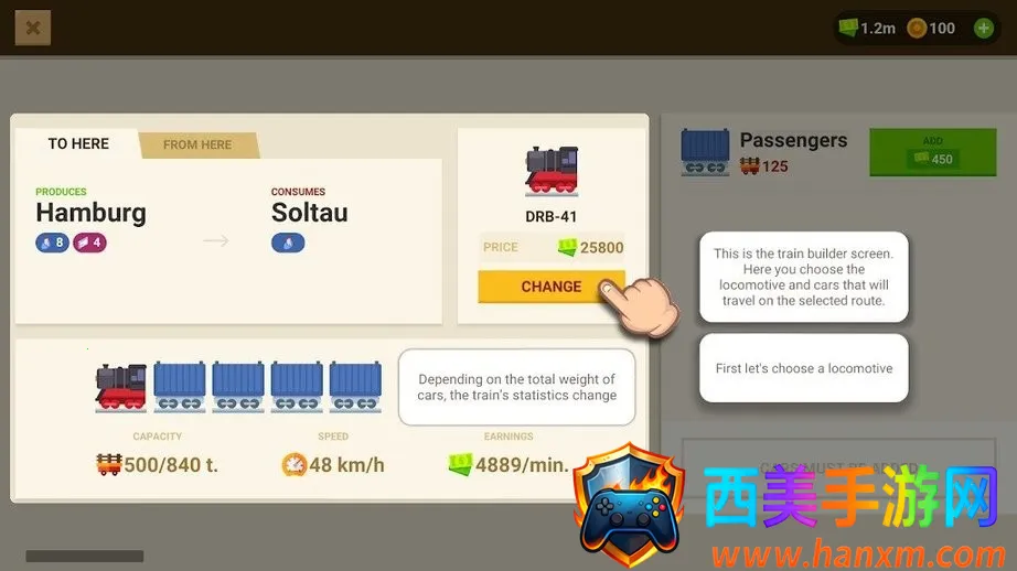 6.首先挑选一台火车头,不同的火车头拥有不同性能,属性越高,运输能力越强