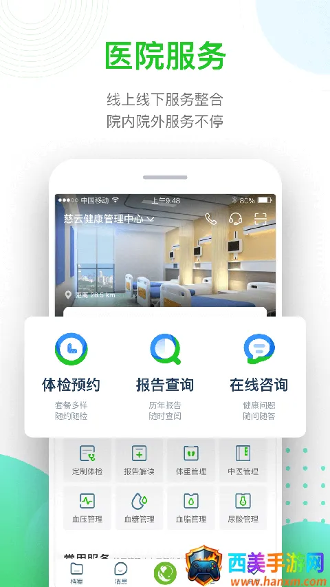 如果你想在慈云健康上查询体检报告,方法很简单哦。打开慈云健康app,进入首页后,找到“查报告”选项。在这里,你可以导入或拍照上传体检化验报告。上传成功后,就能查看分析结果啦。它会为你详细解读体检报告,诠释报告结论,解答你的疑惑。通过这个功能,你能随时了解自己的身体状况,方便又快捷。而且,慈云健康app还有很多其他实用功能呢。比如健康数据管理,能绑定家人健康数据,建立家庭档案,记录血压血糖等体征,支持历史数据对比与趋势分析。还有专业医疗服务,提供家庭医生在线咨询、远程就医等健康评测。它真的是一款非常贴心的健康管理软件,能全方位满足你对健康管理的需求,让你轻松掌握自己和家人的健康状况。