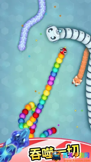 操作简单直观,通过虚拟摇杆就能控制小蛇移动,响应灵敏且反馈清晰,新手容易上手,高手也能展现精细操作。美术风格明亮活泼,小蛇造型圆润可爱,吞噬特效与成长动画流畅生动,视觉表现轻松愉悦,适合各年龄段。提供多种竞技模式,经典模式考验生存,限时模式强调发育,满足各类玩家偏好与挑战需求。实时匹配系统保证对战公平,根据实力智能分配对手,全球排行榜激发竞争意识,赛季奖励维持可玩性。