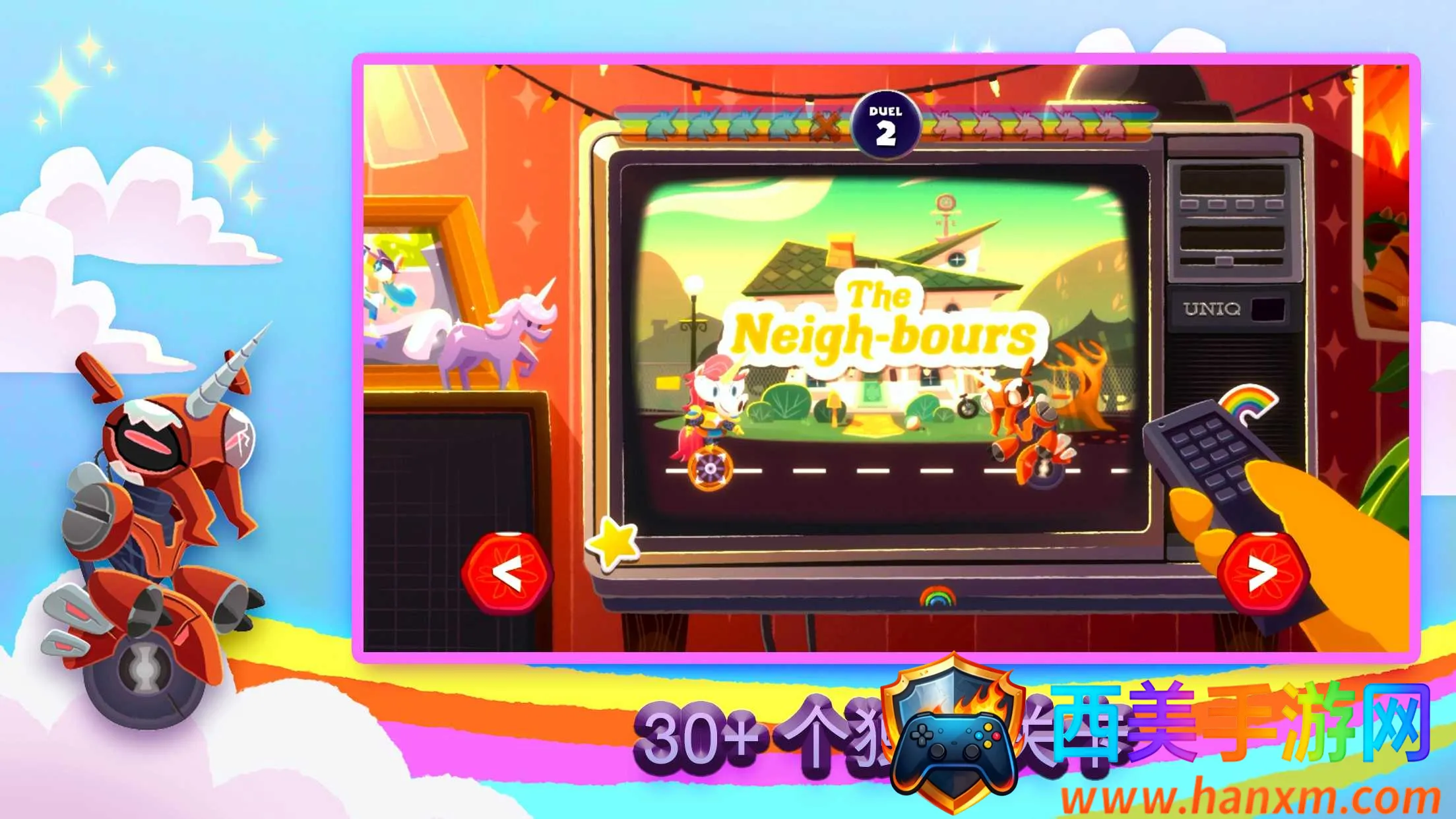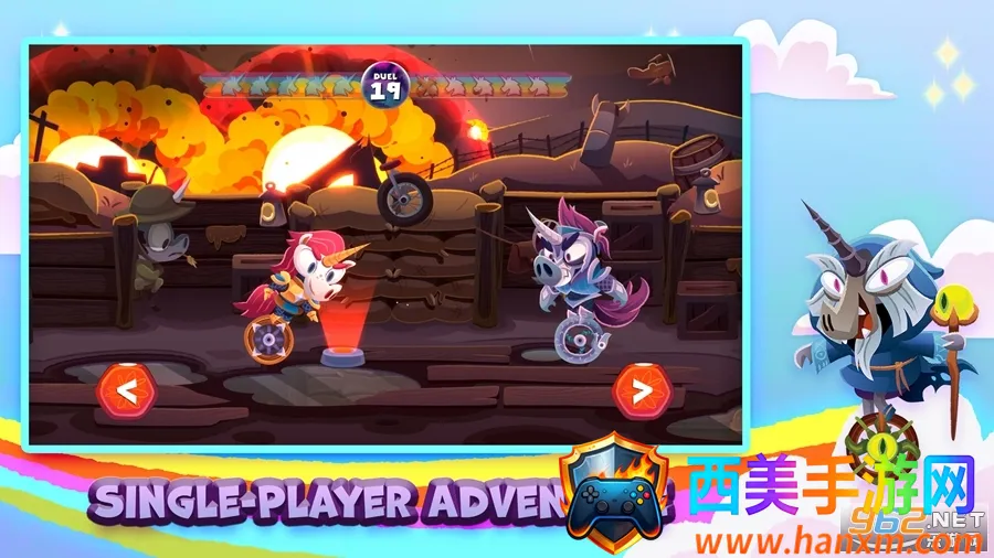 独轮车上的独角兽是一款玩法独特的游戏。你将化身独角兽骑在独轮车上,与其他独角兽激烈对战。要利用技巧躲避障碍、击败敌人,过程充满挑战。