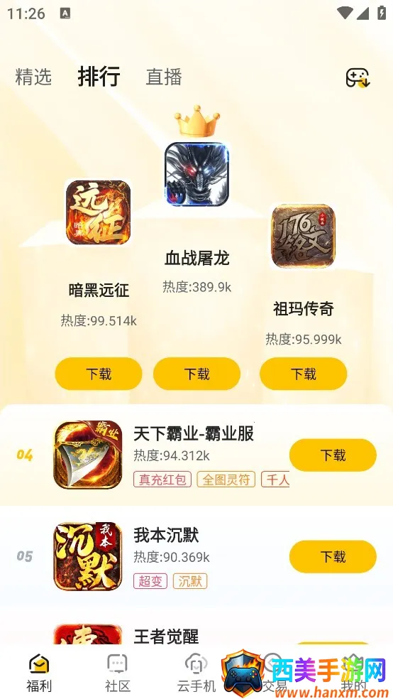13. 汇集市场热门传奇游戏,提供游戏下载账号交易直播等综合服务。