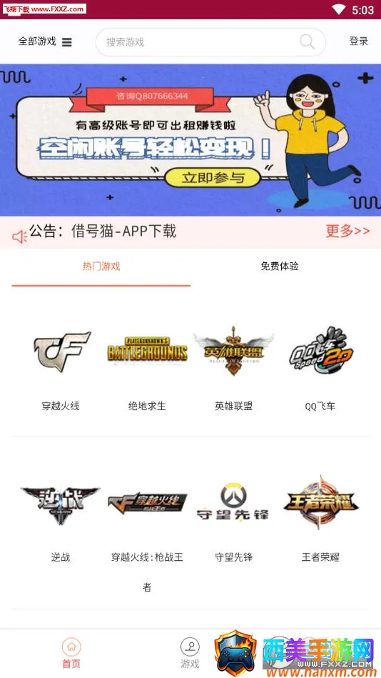 借号猫是一款面向游戏玩家的账号租赁应用,无论你想体验哪种类型的游戏账号,都能在这里方便地租用。平台支持王者荣耀、和平精英、原神、香肠派对等多款热门游戏,欢迎广大玩家前来使用。