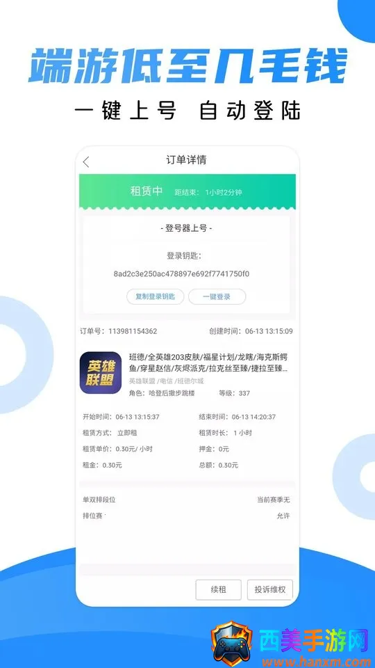 借号猫汇集了上百款热门游戏,涵盖手机游戏、电脑游戏、steam及主机游戏,提供海量账号供用户选择租用。租用时间结束后若未主动下线,可获赠额外时长,邀请朋友使用还能获得免费租号机会。支持账号交易功能,用户可以出售闲置账号变现,也能安心购买所需账号。提供快速上号与一键登录服务,如遇到无法登录的情况,可在十分钟内获得快速退款。平台运营规范,仅向成年用户提供游戏账号交易相关服务。