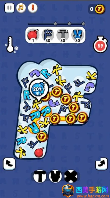 它玩法多样,有猜测字母与词汇的玩法,不断通关能开启新关卡。界面清晰,操作顺手,一个人玩能静心思考,邀好友一起还能较量词汇储备与反应。游戏亮点满满,内置数百个精心设计的字母谜题,还有无限随机挑战模式,题库丰富多变,拼组文字超快乐。字母形象生动,能让你沉浸在奇幻的字符世界。特色也很突出,新颖的解谜机制激发思考还能学知识,持续玩能扩充词汇量。而且背景音乐与音效明快,每关视觉风格和谜题类型不同,难度阶梯合理,能让你在挑战中不断收获成就感,轻松享受解谜乐趣。