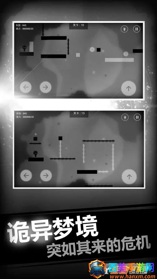 这是一款独特的解谜手游,以其创新玩法吸引大量玩家。玩家扮演史小坑,在诡异梦境世界展开逃脱之旅。关卡设计巧妙,考验手速、操作、分析及思维反应。独特的噩梦主题,将玩家带入神秘恐怖梦境,生死抉择扣人心弦。黑白切换的场景,让障碍与捷径瞬间转变,增加游戏变数。虐心关卡虽难,但激发玩家突破欲望。两种游戏模式,经典与影子模式,带来不同挑战。快来下载,体验这场惊心动魄的逃脱之旅,展现你的实力,拯救史小坑!