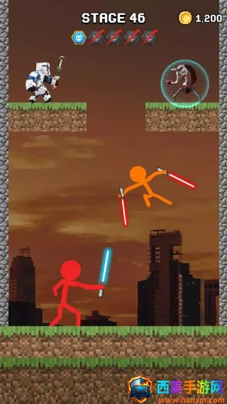 火柴人英雄光剑战争是一款备受瞩目的动作闯关游戏。它拥有独特方块美术风格,将火柴人与科幻星际场景融合,视觉辨识度极高。武器系统多元,光剑、长矛、能量鞭等应有尽有,适配不同战斗流派,还有自由皮肤系统满足个性化需求。战斗节奏明快,支持空中连段、格挡反击与技能爆发,打击感强烈。操作门槛低但上限高,玩法富有深度。玩家在星际场景中通过平台跳跃、闪避与连击战斗,击败敌人推进关卡,解锁新内容。还能解锁切换多样武器与炫酷皮肤,自定义英雄形象。参与每日挑战积累资源,强化武器与英雄能力。可以说,这是一款非常值得一试的游戏,老少皆宜。