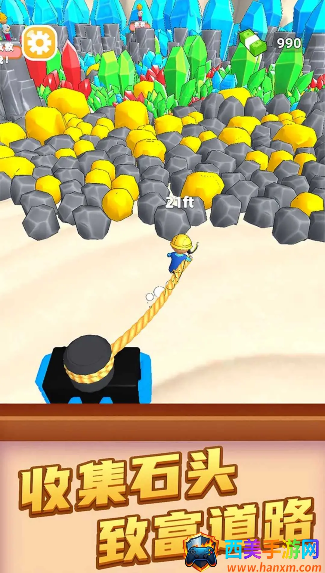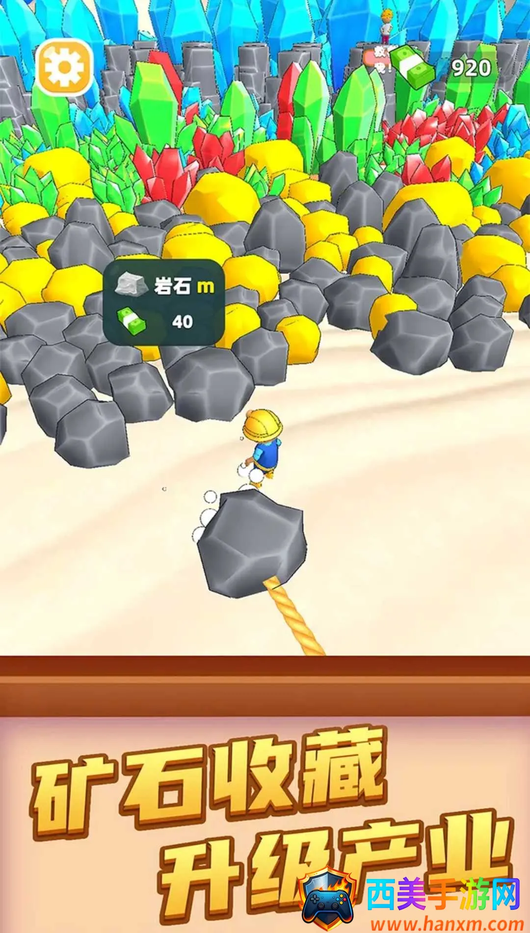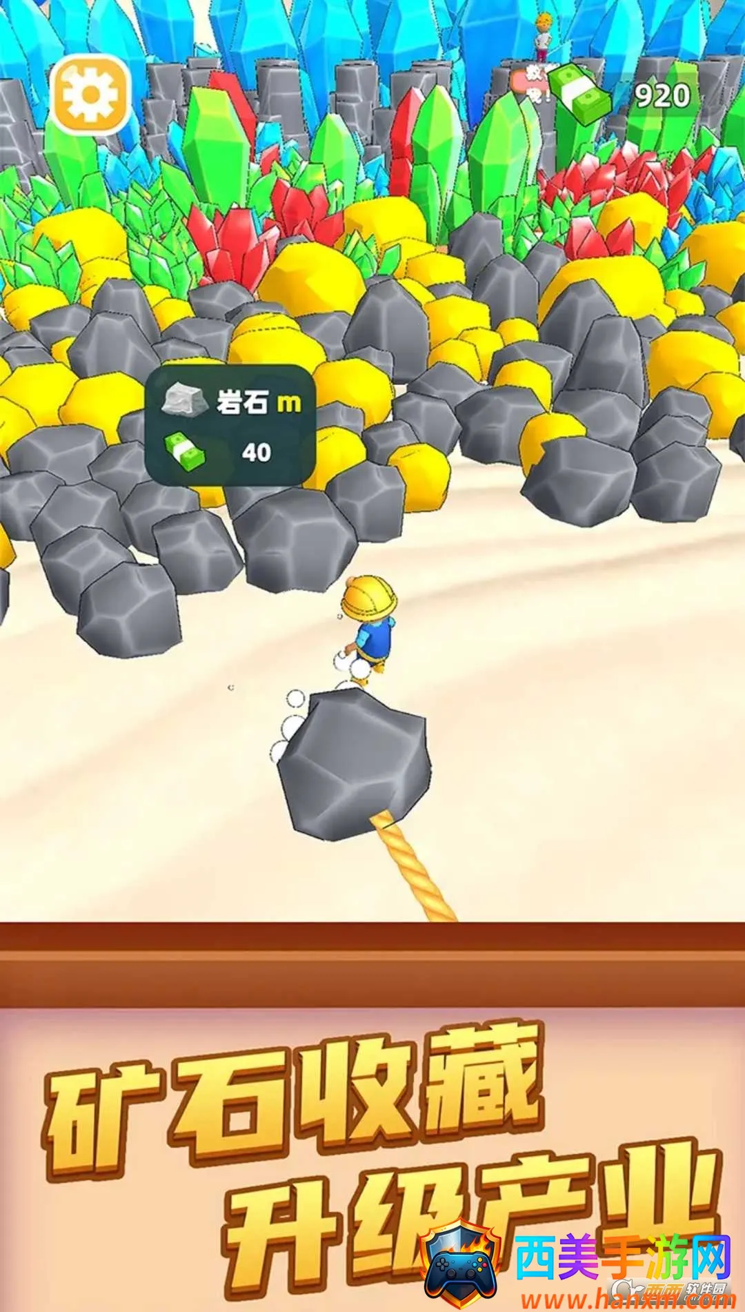 游戏采用流行的低模风图案风格,画面清新唯美,人物场景卡通细腻,还有各种道具矿石,配以轻快背景音效,带来超舒适体验。玩法简单易上手,在矿石丛林中通过双绳牵引搬砖收集石头致富,自由掌握多种资源。有海量丰富的关卡挑战,多达400个关卡等你体验。场景不断变换,不会让你产生视觉疲劳。还有多种道具助你快速完成任务,更能解锁不同矿石,建造自己的矿产赢取高收益,给你独特的挖矿冒险体验。