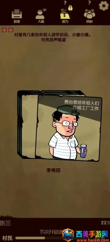 想知道升官模拟器攻略的全部答案?那这款升官模拟器中文版绝对能满足你!它是一款超有趣的休闲益智模拟游戏。在这里,你能扮演初入职场的小人物,体验那瞬息万变的官场生活。