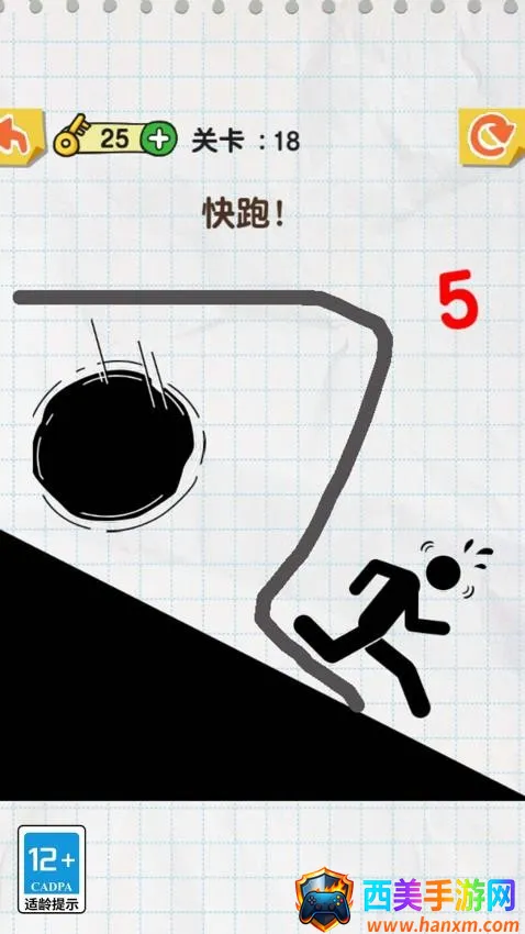 2、通过画线的方式帮助火柴人逃生,画线拦截滚动的物品