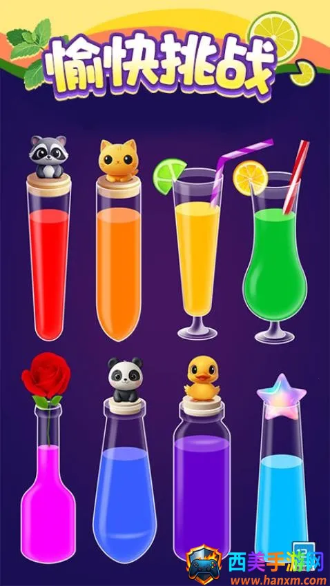 关卡难度递增通过完成各个关卡,玩家将解锁更多的瓶子和颜色组合,这会面临更加复杂的考验和特殊挑战,全程都要集中精力进行安排。