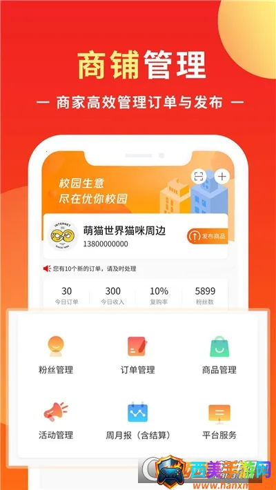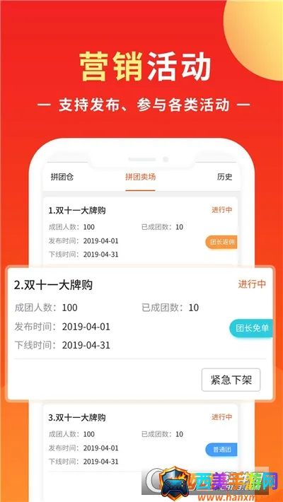 2. 丰富的功能支持:涵盖商铺管理、营业统计、订单核销、营销活动等功能。商家可高效管理订单与发布商品,实时查看营业数据统计,还能参与各类活动。