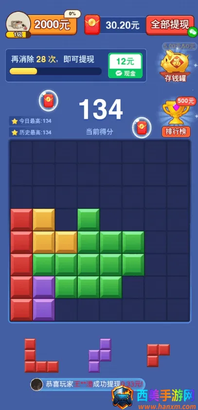 这是一款休闲益智的消方块游戏,经典玩法回归,挪动方块消除行或列就能获奖励,连续消除还有翻倍奖励。游戏画面精美,玩法多样,有丰富关卡,能使用道具,方块外观可爱。操作简单,随时随地可闯关,关卡难度随解锁增加,极具挑战性。还有其他有趣模式,完成任务能享受愉快游戏过程。在这里,你能畅享精彩挑战,完成闯关任务收获丰富奖励,还有红包奖励等你来拿。闲暇时玩一玩,既能感受消除乐趣,又有机会赚取外快,千万别错过,快来体验吧!
