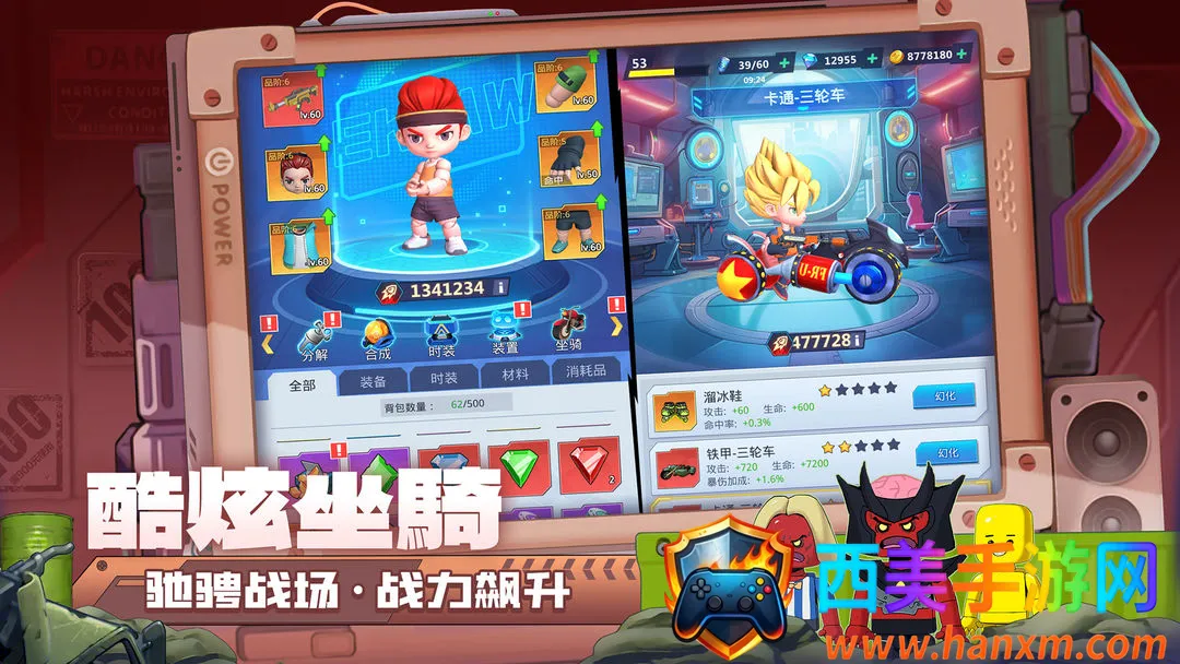 游戏特色满满,魔性割草超爽解压;可自由穿梭,单手走位火力全开;武器丰富、技能多样,能自由搭配;还有炫酷坐骑,驰骋战场战力飙升。
