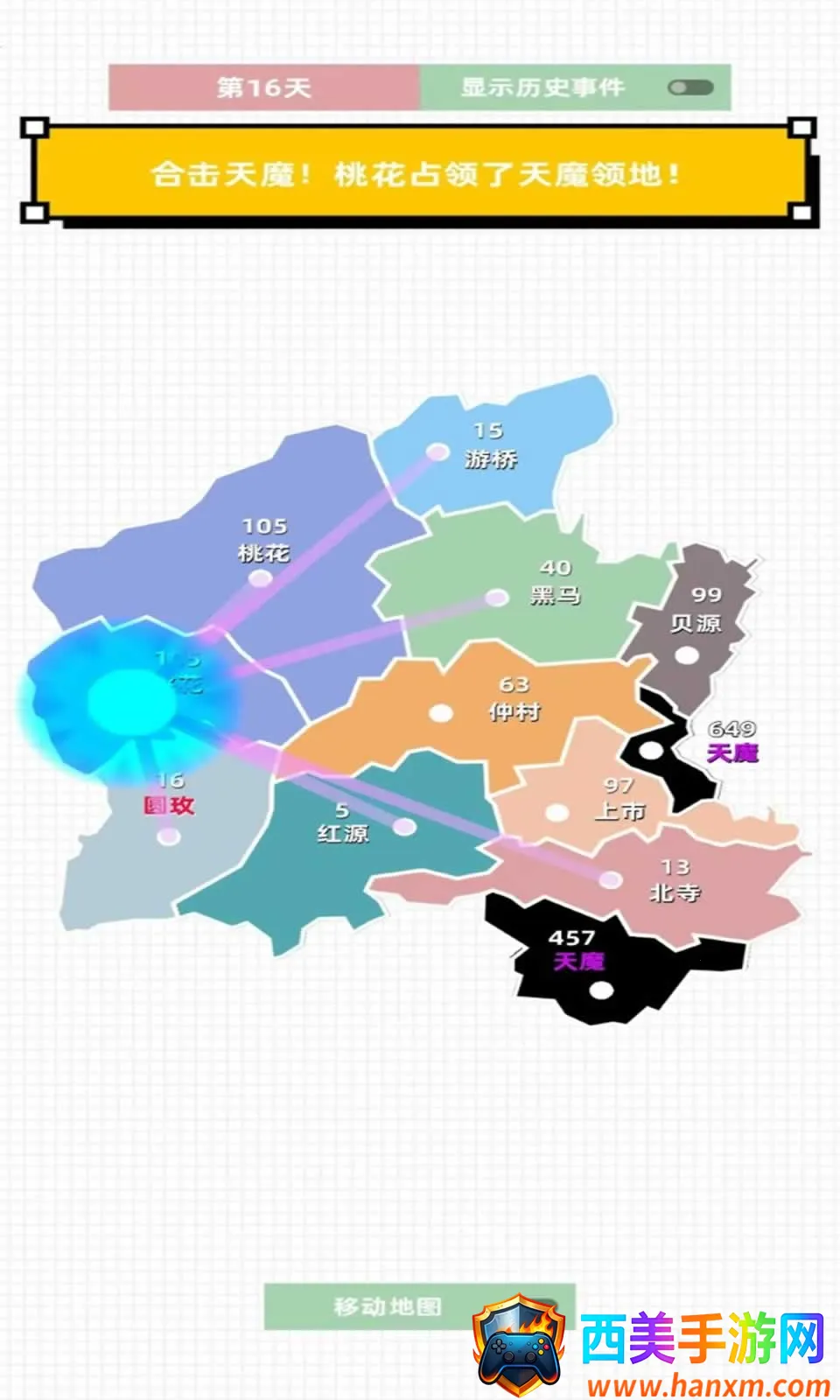 2. 策略玩法:玩家必须获得 11 个村的权柄,恢复勇士之心才能彻底打败天魔拯救小镇,且若勇者之心不完整,天魔将不断复生,这需要玩家精心规划策略。