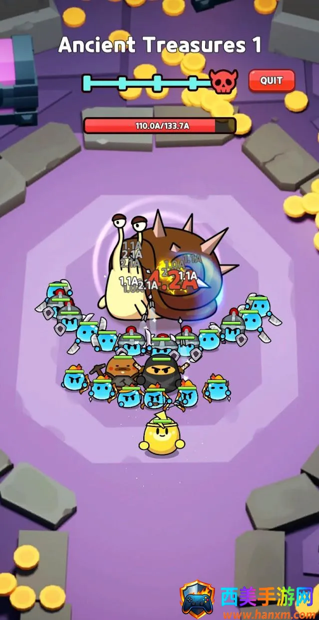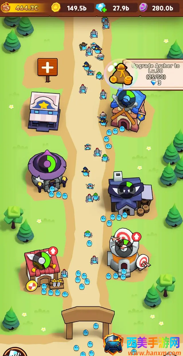 2. 升级与策略玩法:可通过附魔的史莱姆石和黄金升级英雄和工厂,创建强大军队,在泥泞战场制定策略、明智选择动作、释放技能来取得胜利。