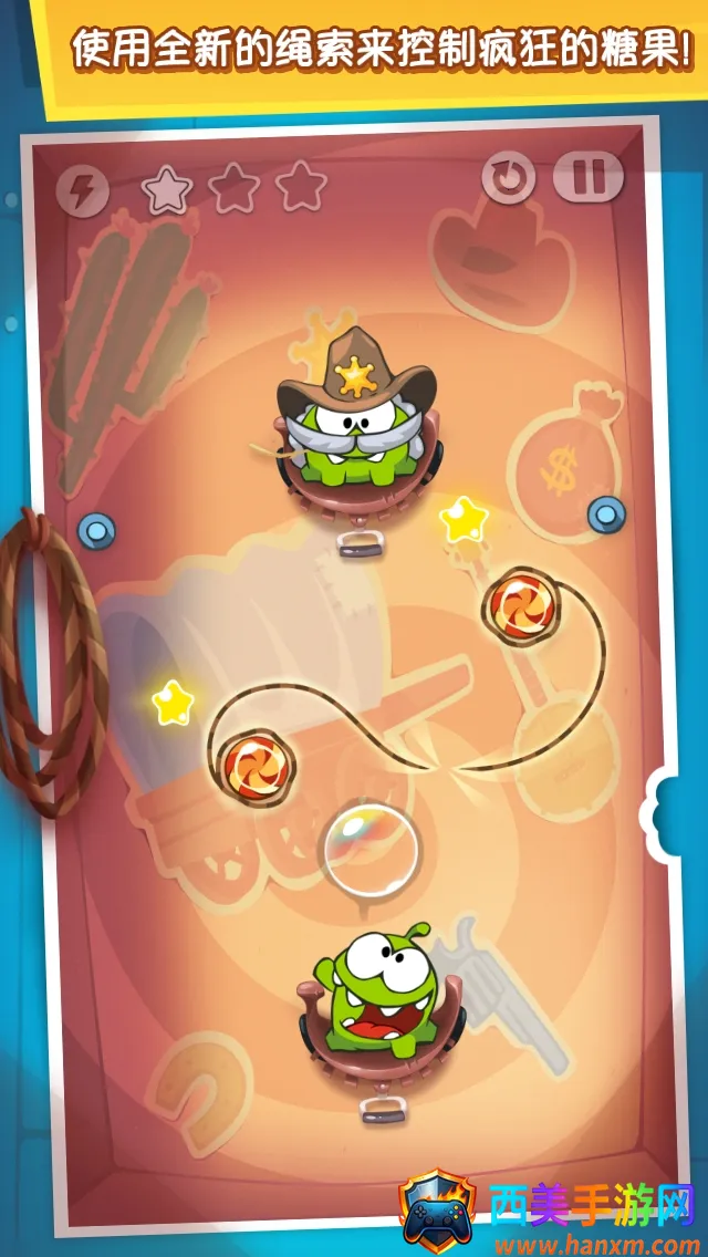 2. 趣味解谜玩法:以触点操控为主,割断绳索、控制糖果滚动方向,让奥姆诺姆吃到糖果。过程中需应对各种挑战,像同时切断两条绳子等,很考验思维与操作技巧。