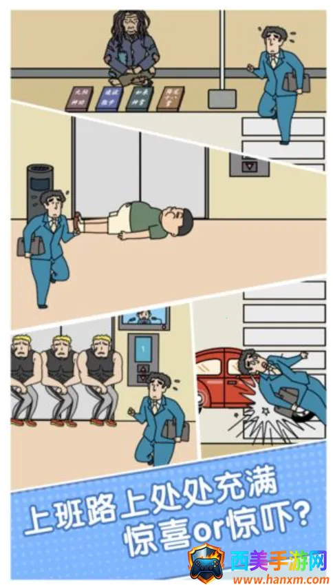 1、游戏题材新颖,以上班路上的各种状况为背景,无论是入职迟到、睡过头还是偶遇女神等情景都有描绘,十分贴近生活。
