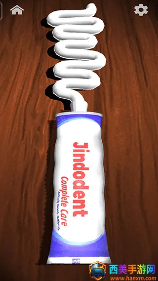 4、进入,页面会出现一个拧开的牙膏,点击牙膏可以挤压,还伴有模拟真实的声音。