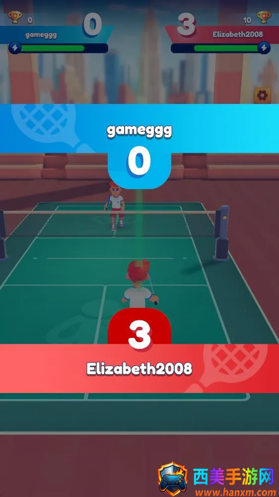 3、正式开始后向上滑动屏幕和向下滑动屏幕都可以击中将对手打过来的球。
