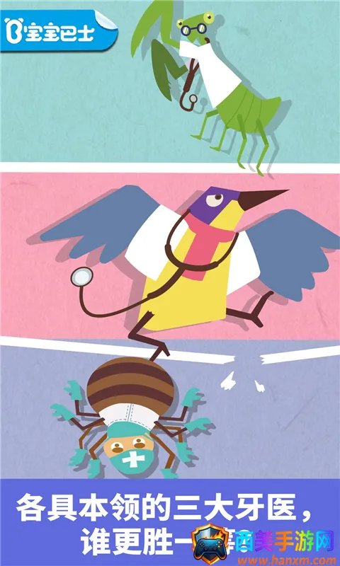 想让孩子轻松get护牙知识?这款宝宝巴士宝宝小牙医游戏超合适!它以牙齿健康为主题,用轻松可爱的方式传递护牙知识。孩子能化身小牙医,为卡通角色检查蛀牙、拔牙、装新牙,全程好玩无压力,消除看牙恐惧。游戏画风温暖明亮,角色拟人化,动作表情细腻。理念是启发重于灌输,培养观察力、判断力、动手能力和共情意识。新手教程简单:点击开始,迎接病人,用放大镜找蛀牙,选医生治疗,装新牙。特色满满:8个卡通角色、6种互动玩法,涵盖全流程。把护牙知识融入趣味操作,孩子能自由尝试。还有四大生活化场景,内置早教玩具,微表情和肢体动画丰富,触控响应细腻,带来沉浸式体验,助力孩子快乐启蒙,家长轻松育儿!
