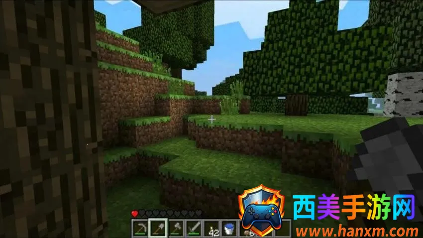 3、前方山林之中,能够在山坡上发现许多的树木,使用适合的伐木方法来获得更多木材。