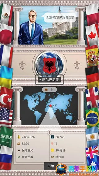 在这款深度写实的模拟策略手游中,玩家化身国家最高领导者,执掌大权。军政外交经济多维博弈,尽显大国领袖谋略。开局可自由选任一国家开启治国征程,内置新手教程对新手友好。能结合国情选发展方向,精准规划国家未来。通过完成任务领取丰厚奖励,登录谷歌账号解锁全球排名。在战争体系、部门管理、外交关系等多方面都有丰富玩法,全方位考验玩家能力,让玩家体验独特的治国乐趣,感受大国领袖的风采。