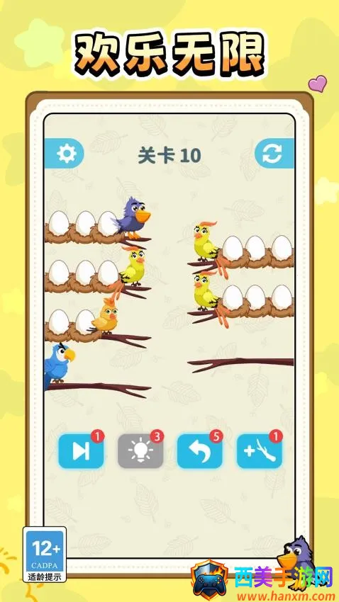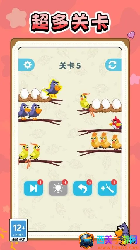 创新玩法超独特,告别传统网格框架,在交错纵横的空树枝上滑动小鸟消除,带来全新体验。