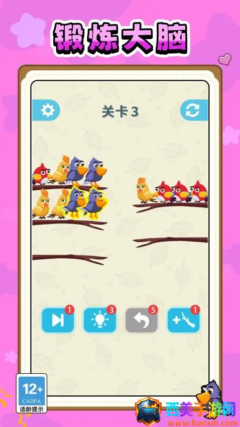 美术风格温馨治愈,小鸟造型圆润可爱,消除动画和音效轻快活泼,营造轻松无压力氛围。