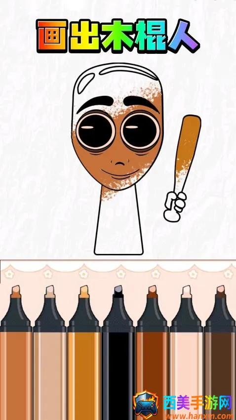 4、画出木棍人:自由添加正确的颜色,可以参考官方给出的原图立即上色,操作很简单