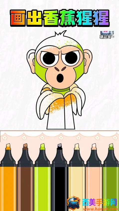 3、画出香蕉猩猩,查看原版角色的颜色,在底部区域选择适合的画笔开始上色