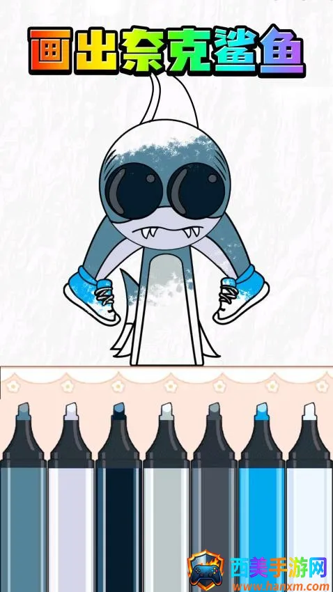 1、画出AI山海经手游提供简单的画画功能,选择不同颜色的画笔,直接绘制画出奈克鲨鱼