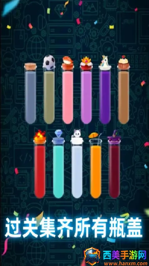 玩了个啥安卓版手机版是一款有趣的液体分类游戏。有多种瓶子类型,含不同颜色液体,通过倒入相同颜色液体消除瓶子。关卡丰富,玩法简单,支持随机刷新、撤销步骤,还有多种解锁及设置功能,乐趣无穷。