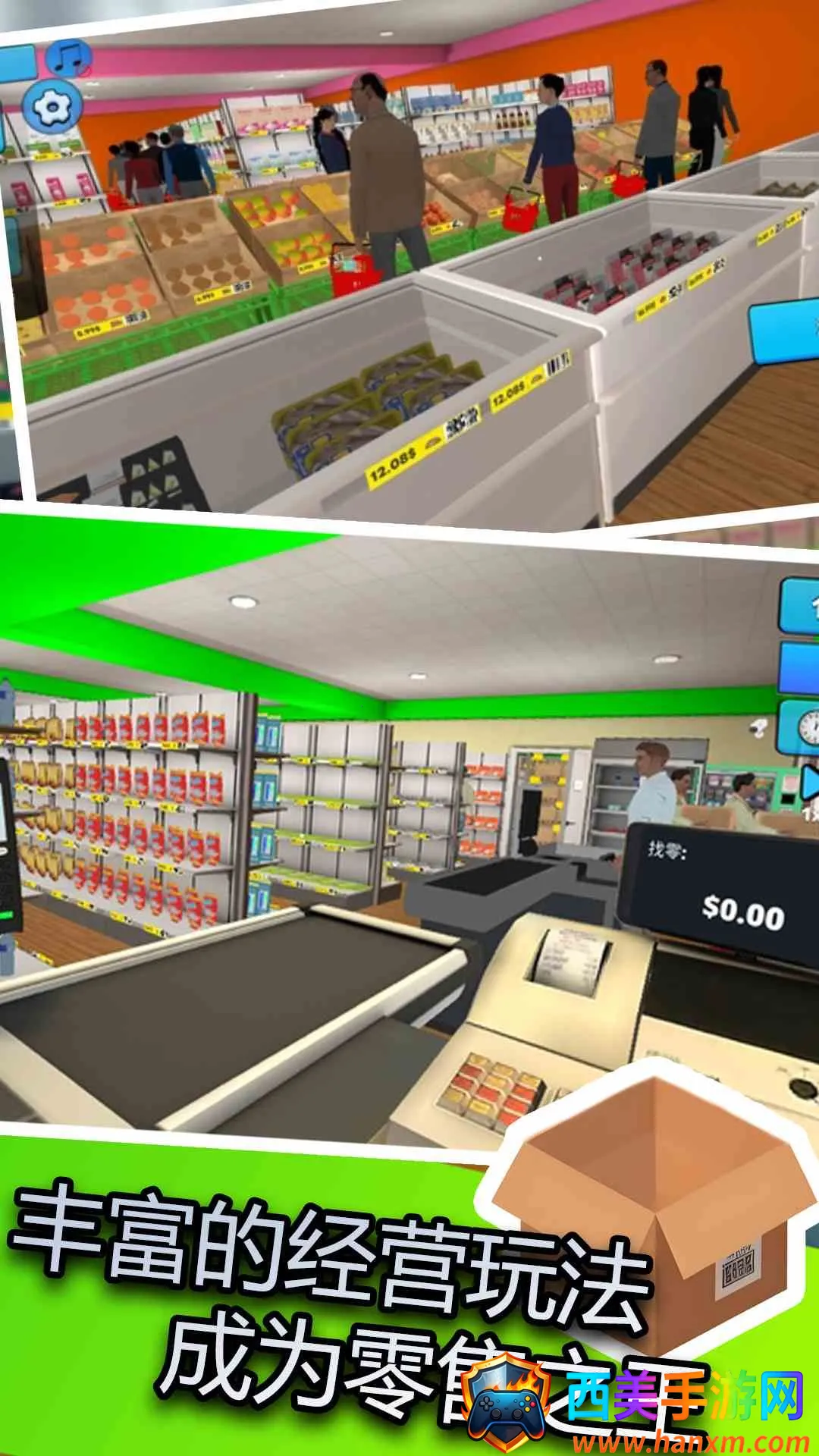 这是一款以超市经营为主题的模拟类游戏。游戏采用卡通画风,让玩家全程参与超市运营管理,从规划店铺布局、摆放商品,到处理收银、管理订单,再根据市场动态调整策略,打造受欢迎的零售场所,实现营业目标。